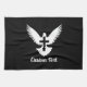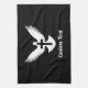 Silhouette de palo con alas abiertas y una cruz. Texto personalizado.