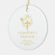 Celebra el bautismo sagrado con nuestro adorno muy simple con una elegante cruz de imitación de oro y gráficos de paloma. Una combinación perfecta de tradición y simplicidad, este regalo es la manera ideal de marcar una ocasión sagrada. Personalizable completo para personalizar el nombre, fecha, evento y detalles de la ubicación. El diseño está realzado por detalles delicados y subestimados, lo que lo convierte en un conservadurismo eterno perfecto para quienes aprecian la belleza subestimada y tradiciones significativas.