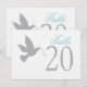 Paloma gris con números de mesa de boda azules para combinar con el menú de boda.