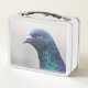 Un cierre encima de la foto de una paloma hambrienta. Esta imagen también permite el espacio para la adición de texto en el izquierdo inferior permitiendo que sea personalizada más a fondo con un nombre, un etc.