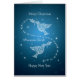 Una tarjeta de Navidad para ti puede enviarle a cualquiera que conozcas. Dos palomas de paz con ramas de olivo. Las palomas están dibujadas con muchos símbolos Navidades y copos de nieve. Las palomas están volando en un cielo azul lleno de estrellas. Una tarjeta de Navidades maravillosa que será bien recibida por todos.
