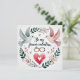 Celebre el amor y el compromiso con esta encantadora tarjeta que presenta dos palomas elegantes, anillos de boda entrelazados en un corazón y rodeados de una delicada corona floral. Perfecta para el Día de San Valentín, compromisos, aniversarios o propuestas, este diseño captura la esencia eterna del romance y la devoción.