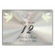 Este diseño romántico presenta un elegante fondo de perla blanca con bordes de cinta, corazones y palomas unidos con un lugar para el número de la mesa, los nombres de la pareja y la fecha del evento. Disponible en varios colores para el tema boda. (La cinta de opciones se simula en la ilustración). Diseñado para coordinar con la colección de Bodas "Dos se convertirán en uno - plata y oro". Para cambiar detalles, haga clic en "Personalizar". Para mover el texto o cambiar el tamaño del texto, el tipo de letra o el color, haga clic en "Haga clic en el personalizar más adelante".