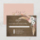 Pampas Grass Boho Blush Rosa Peonía y Anemone Blanca Floral Tarjeta de Respuesta de Madera Rústica para coordinar con nuestra suite de invitaciones de boda. El fondo de madera oscura de granero rústico resalta las flores suaves de acuarela pastel. Arte creado por la artista licenciada internacionalmente y diseñadora de productos, Audrey Jeanne Roberts, derechos de autor