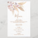 Tarjeta de menú Boho moda pampas