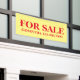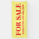 Gran personalizable exterior de banner "For Sale" con sus datos de contacto. En un bonito diseño rojo y amarillo. Adecuado para la invitación de venta de propiedades.