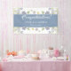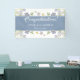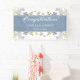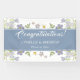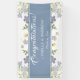 Pancarta Boda azul de las flores de verano diseñada con flores pequeñas en tonos suaves de azul claro y blanco, con toques de verde y amarillo. El texto incluye: ¡FELICITACIONES!, Los nombres de la novia y de Groom y la fecha de Boda. Para personalizar, simplemente inserte su texto en nuestra plantilla sencilla, reemplazando el texto de ejemplo. Asegúrese de ver toda la colección de Bodas azules de las flores de verano para tarjetas y accesorios de recepción. Disfruta.