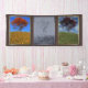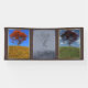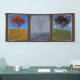 Un apacible paisaje en 3D en primavera o verano, creado en Vue. Encima de una colina cubierta de hierba verde y coloridas primasías, contra un cielo azul con espinos de nubes, un solitario arce japonés rojo se para con un banco de madera para descansar. Un águila solitaria sopla en el viento. Un apacible paisaje en 3D en otoño, creado en Vue. Encima de una colina cubierta de césped alto y dorado, contra un cielo azul claro, un solitario arce naranja se para con un banco de madera debajo para detenerse y descansar. Un paisaje frío y ventoso en 3D en invierno, creado en Vue. Encima de una colina blanca con hielo y nieve, contra un cielo gris tormentoso con lluvia o manto cayendo sostenidamente, un solitario y desnudo árbol de arce se para con un banco de madera debajo.