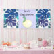 Adorable pequeño dinosaurio - ¡todavía dentro de su huevo! - decora este cartel de Baby Shower. Palmeras de jungla decoran el borde. Tan lindo que es realmente ridículo. Azul, violeta y verde.