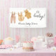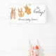 Baby Shower Banner con un adorable ilustracion de ropa de bebé de época clásica colgada en un tendedero. Personalice su información o haga clic en "Haga clic en el personalizar más adelante" para editar estilos de fuente, tamaño y colores.
