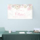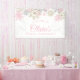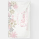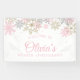 Invierno Onederland primer cumpleaños con copos de nieve rosados y dorados Banner de bienvenida.