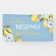 Da la bienvenida a tus invitados con esta maravillosa y llamativa pancarta de vinilo. Personalízala con el nombre de tu invitado de honor y el tipo de evento. Parte de nuestra colección de baby shower "Main Squeeze", pero también funciona muy bien para una boda de limón, celebración de cumpleaños de limón o baby shower "Little Lemon". Cuenta con hermosos limones de acuarela amarillos y flores florales azules sobre un fondo de pizarra azul polvoriento. Material disponible para interiores o exteriores.