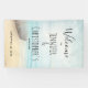 Pancarta boda con una hermosa imagen rústica. Tonos sutiles de azul claro, marrón arenoso y blanco suave. Escena de playa con un barco a orillas del mar con una red de pesca colgando de un lado. Una elegante mirada de mal gusto.