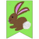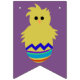 Pancarta de bonito para Bunting Banner con 16 banderas para exhibir al aire libre para divertirse durante la primavera y la Pascua, o en el interior de un mantel de chimenea, etc. Happy Easter (Pascua feliz) se escribe en el texto de primavera rosado y peringuil sobre fondo amarillo pálido. El centro de la confitura tiene un lindo conejito marrón de Pascua con orejas rosas y nariz y cola de algodón. Los acabados de la confección tienen adorables pollitos que nacen de sus huevos, y huevo con puntos azules, y un huevo morado festivo con flor blanca verde y acentos amarillos cremosos. Material gráfico original de TamiraZDesigns en www.zazzle.com/tamirazdesigns