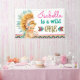 Chicas silvestres un cartel de primer cumpleaños con un lindo cabello rubio niña sujetando un protector de ensueño y usando un atuendo nativo americano indio en un bonito de diseño del suroeste azteca indio. Puedes añadir el texto de tu elección para personalizar este adorable banner de la fiesta tribal de cumpleaños para tu evento.