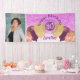 Cartel festivo con Purpurina rosa, globos Fiestas y foto para ella.