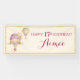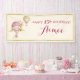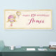 Balón acuático de aire caliente en tonos rosa, dorado y gris, sobre un fondo de color crema. Personalice la plantilla para la edad y el nombre.