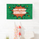 Pancarta de cumpleaños de Green Action Hero con nombre personalizado personalizado personalizado
