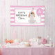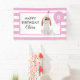 Celebra el cumpleaños de tu hijo con este lindo ilustracion de cachorro con un gorra fiesta y un globo. Personaliza este divertido cartel de cumpleaños agregando el nombre y la edad de tu hijo. El gorra fiesta y el globo son de color rosa.