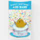 Pancarta de cumpleaños de Groundhog Day feliz con saltos de manada de un pastel. Para personalizar el texto de edición para añadir su nombre.