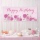 Pancarta de cumpleaños feliz con flores rosadas