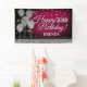 Pancarta de cumpleaños feliz rosa y plateado Purpu