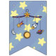 Trae el soñador en tu pequeño con este móvil juguetón, de temática espacial, adornado con una luna creciente, una estrella fugaz, un sol brillante, un barco con cohetes y un planeta colgado de los brazos con detalles de zigzag azul y púrpura y una estrella justo en el medio. Un patrón de rayas azules pálidas en dos tonos y estrellas amarillas suaves añade un agradable fondo a los móviles de colores vivos. Personalizar el mensaje en la pancarta con el género de tu futura hija o un mensaje de tu elección para crear una decoración fiesta verdaderamente única para tu ducha de bebé. Esto se puede cambiar fácilmente entre "niño", "chica" y "bebé", y si estás teniendo mellizos u otros múltiplos, simplemente haz clic en el botón "Personalizar" para más opciones. No olvide visitar la colección completa de Dreams of Space Mobile para más regalos y productos de primera para una ducha de bebé o la pequeña de tu vida.
