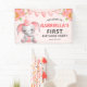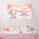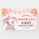 Chica de elefantes rosados lindo Primer cumpleaños fiesta panner, ¡pero se puede personalizar a cualquier edad! El diseño presenta una adorable acuarela de elefante bebé con un gorra fiesta, divertida decoración de racimo y flores de color rosa bonito. Simplemente personaliza el nombre, la edad y la fecha.