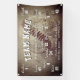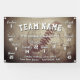 Diseñado para un equipo de béisbol con nombre de equipo y nombres de jugadores y números de camiseta, entrenadores, mamá del equipo y mascota del equipo. Este diseño es totalmente personalizable para sus necesidades. Imagen de fondo: Sucio béisbol en el banco del parque, por Leah McPhail.