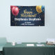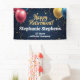 Balones festivos y coloridos y banner decorativo de confeti de personalizable de la empresa de retiro. Globos rosas, amarillos y azules sobre fondo azul marino con confeti dorado y fuente de escritura. Celebrar un fiesta de retiro o divertida celebración de oficina para hombres y mujeres con este cartel de fiesta de retiro corporativo de personalizable. Celebrar los logros y la jubilación de una mujer o un hombre profesional.