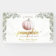 Prepara el escenario para tu celebración de otoño con este banner de baby shower A Little Pumpkin Is On Her Way, que presenta una calabaza de acuarela rosada, vegetación suave de eucalipto y tipografía elegante de estilo dorado. Este telón de fondo versátil es perfecto para decorar la mesa de postres, el área de fotos o la exhibición de regalos, creando un punto focal cálido y memorable para tu baby shower de otoño. Personaliza con el nombre de la futura mamá y la fecha del shower para un hermoso recuerdo que atesorarás.