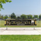 Un gran cartel de felicitaciones por graduación de fotos en negro y oro al aire libre