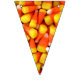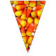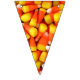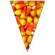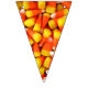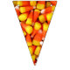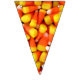 Foto de maíz dulce en cada triángulo de este colorido cartel de bunting de Halloween. Esto ayudará a hacer que la decoración de tu próxima fiesta de Halloween sea instantánea. Los naranjas luminosos y los embutidos amarillos le dan un ambiente fiesta.