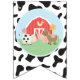 banner de la fiesta de cumpleaños de la granja con animales de granja y animales de granja y antecedentes de impresión de vacas.
