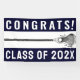 Banner creativo del equipo lacrosse con palo negro y felicitaciones por el equipo o la fiesta de graduación. Para personalizar, edite texto para añadir año o personalizar de otro modo.