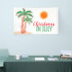 ¡Celebremos a los Navidades en julio con una barbacoa o fiesta! Invite a la familia y a los amigos a la celebración temática de sus Navidades y decorarla con este cartel de estilo isleño con palmeras dibujadas a mano decoradas con luces. Dibujo original © Michele Davies.