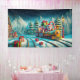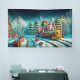 Encantadora miniatura de la representación 3D de Santa que deja el Polo Norte en Navidades Eve cargado de regalos