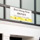 Un cartel de miel de una pequeña empresa personalizado con un texto grande encima para tu nombre de negocio y producto, y un texto más pequeño en la parte inferior para tu dirección u otra información, y arte vintage de abejas melíferas en un panal de miel. Personalizar para cambiar fuentes, colores de fondo, subir tu logotipo, incluso guardar tu diseño para más adelante.
