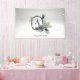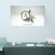 La corona verde oscuro brillante con flores y hojas sobre fondo de gradiente blanco y gris. Monograma opcional