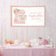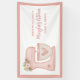 Una adorable mezcla de pasteles rosados con flores y las palabras "hecho con amor" y el nombre de su tienda decoran esta pancarta de panadería. Personalízalo con el nombre de tu tienda. También viene en rosado. Diseñado para ti por Blackberry Boulevard.