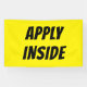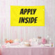 Guía a los solicitantes de empleo directamente a su puerta con este cartel APPLY INSIDE en negrita amarillo y negro. Diseñado para la máxima visibilidad, se empareja perfectamente con los carteles "Now Hiring" o "Help Wanted", dejando claro a dónde deben ir los solicitantes. Colores de alta visibilidad: fondo amarillo con texto negro en negrita para la claridad de la carretera y de la tienda. Llamada a la acción clara: indica a los solicitantes exactamente dónde deben presentar su solicitud. Construcción duradera: vinilo resistente al clima con armazones reforzados para la fácil colgamiento en interiores o exteriores. Tamaños múltiples: disponible en pequeños tamaños para ventanas y formatos al aire libre más grandes. Ya sea que sea un restaurante, una tienda minorista o una empresa de servicios, este banner asegura que su mensaje de contratación no sólo atrae la atención, sino que también guía a los candidatos a dar el siguiente paso.