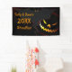 Cartel personalizado de la fiesta de Halloween. Presenta una criatura murciélago o un monstruo y cara de jack-o-linterna aterradora. Los colores son naranja, rojo y negro. Vea nuestros otros diseños de banners personalizados de Halloween en esta colección:
