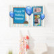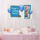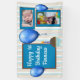 Balones azules marrones y rayas blancas tema de primer cumpleaños para un bebé. Personalice este cartel de cumpleaños agregando la foto y el nombre de su bebé en el área del personalizar.