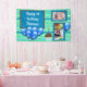 Balones azules marrones y rayas blancas tema de primer cumpleaños para un bebé. Personalice este cartel de cumpleaños agregando la foto y el nombre de su bebé en el área del personalizar.