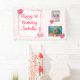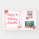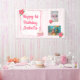 Bonito floral rosa estriado tema de primer cumpleaños para una niña. Personalice este cartel de cumpleaños agregando la foto y el nombre de su bebé en el área del personalizar.