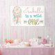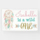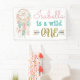 Chicas desfilaron una pancarta de primer cumpleaños con cazador de sueños de bonito y una de oro. Puedes añadir el texto de tu elección para personalizar este adorable banner de la fiesta tribal de cumpleaños para tu evento.