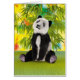 Representación digital 3D de un oso panda y plantas de bambú verde en un fondo colorido