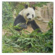 Una hermosa fotografía de un panda comiendo bambú impreso en una baldosa de cerámica.
