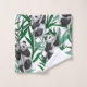 Hand- drawn pattern with giant panda cubs climbing branches and bamboo leaves.