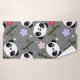 Caras, flores, y bambú sonrientes de la panda en un estilo del kawaii con un fondo gris